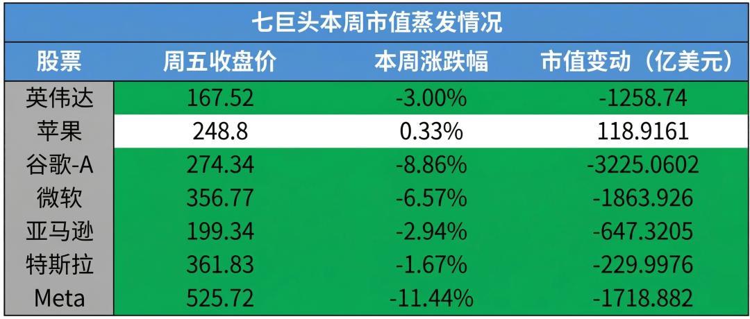 七巨头单周狂泻8500亿!
