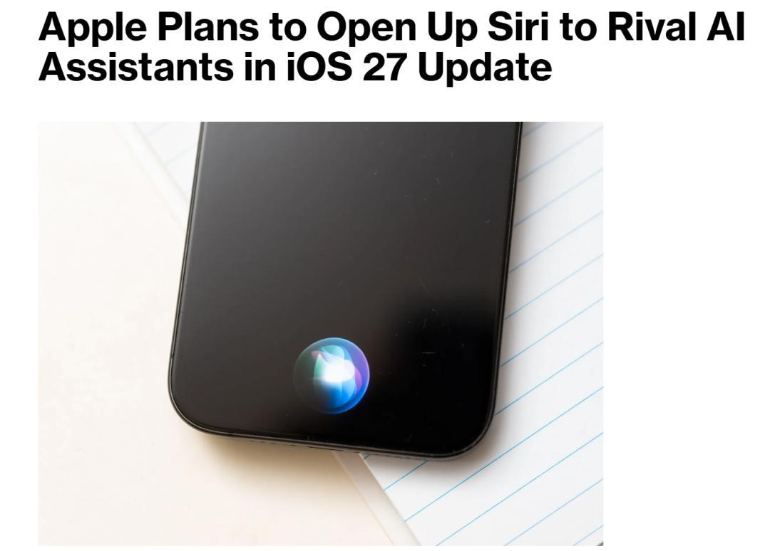 美股投资网了解到,苹果将在iOS 27中引入一套名为“Extensions”的新机制,允许Google Gemini、Anthropic Claude等第三方AI像App一样直接接入Siri。