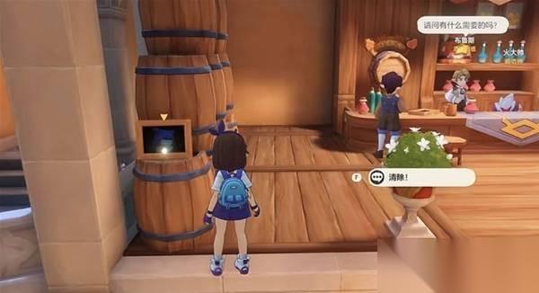 先与老板对话触发清理任务(清理图中的这种相框,总共需要清理四个,就在店里面)