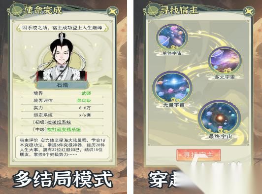这款模拟穿越者系统的休闲游戏,主打就是开放性极高。既可以自己定主角挑系统,也能有不一样的剧情以及结局。无论大家在游戏当中想要拥有怎样的人生,都可以通过窥探宿主的方式对他们进行全方位的了解,当完成了每一个人物的使命以后,就可以帮助宿主登上人生巅峰,有多结局模式。