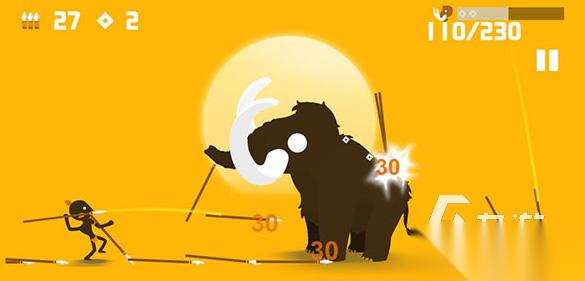 这款单人闯关游戏里,我们会以原始人的身份展开冒险,为了让日常生存更有保障,也为了积攒更多可用物资,需要不断对抗野外出现的各类野兽,主要靠扔出手中的器具对它们发起攻击。要是遇到血量更厚的野兽,想要成功将其制服就会变得更费力,这时候就得提升手中器具的威力,让自己更有胜算,想要顺利推进,还需要保证出手时足够准确。