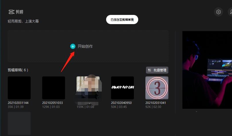 打开剪映软件
