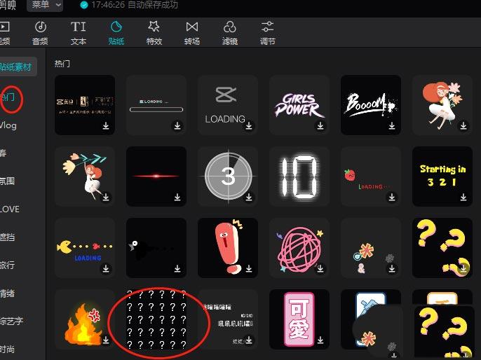 然后在热门列表找到这个问号动画