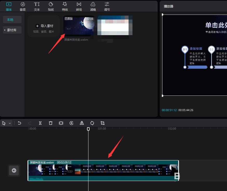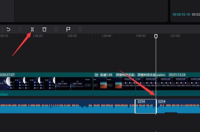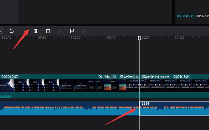 当然,我们也可以将多余的音频进行删除,如图所示,选中多余的音频部分并进行裁剪。