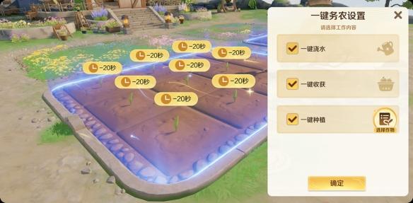 随着农场等级的提升,农场灵像会开放一键务农功能,提供方便的一键浇水、一键收获、一键种植等功能。请努力提升农场等级,解锁更多的便捷功能吧!