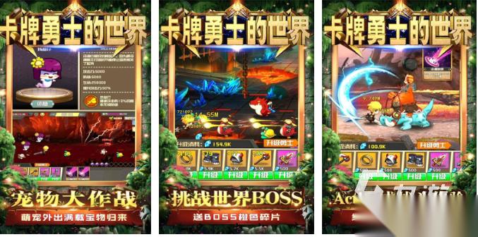 在这款卡牌手游中大家会成为勇者完成形形色色的卡牌冒险,可以竖屏操作也有着极为特殊的战斗模式,可以抽卡获取武器装备以及形形色色的宠物,世界BOSS挑战自由带来的参与感真心不错,自由进入异世界化身卡牌勇士战斗的过程更刺激,战斗特效极为花哨也哟组合多种多样的作战任务可以完成。