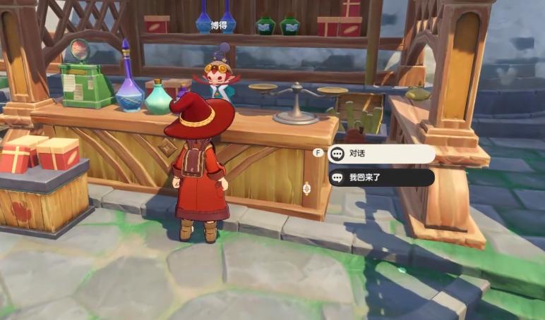 可以再次把角色传送到商业街,在商业街这里有一个炼金台,炼金台这里会有一个npc角色,玩家需要在他这里购买液化药剂,然后玩家就可以施展这个魔法,想要确认这个魔法是否可以正常应用,玩家可以再次回到码头这里,继续和这个带着果冻的学生对话,这时候玩家就可以直接变成史莱姆,然后就可以直接通过这个下水道入口,进入到全新的副本中开启挑战。