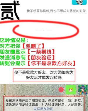 不过如果对方屏蔽自己了,或者设置了仅聊天,也会显示这样,那就加上转账这一步,会弹出来他已经不是好友,这样就准确无误啦!