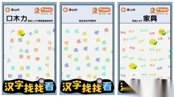 你将在手游《汉字找找看》中挑战各种有趣的汉字寻找玩法,例如代表植物的字词,部首是口字旁的字等,各种有趣的主题令大家可以获取欢快酣畅的游戏体验。游戏中为大家收录了常用的三千多个汉字,同时也附带对应的注解等,轻松休闲的娱乐玩法中,也能令玩家挑战汉字储备知识,尽情闯关汉语世界。