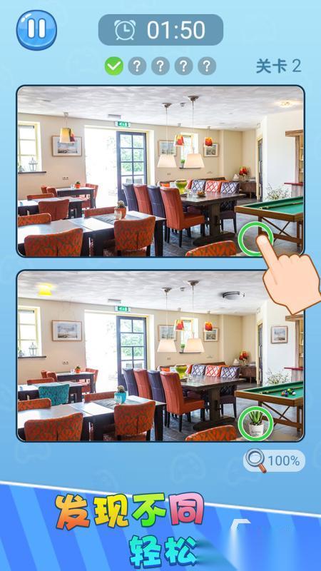 在这里面的每个关卡都是独立的挑战,挨着的关卡之间是没有强制性的目标要求上的联系,最主要的就是比较其中图片所具备的差异之处,特定的数量寻找到之后,玩家们就可以顺利的过关,《找茬找不同》这款手游所带来的玩法还是会比较的关键的,购买道具还可以帮助到大家去快速的通关哦。