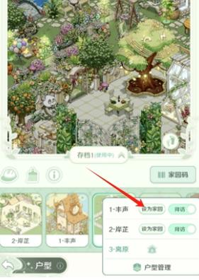 3、点击右下方的户型管理将你喜欢的户型设置成家园
