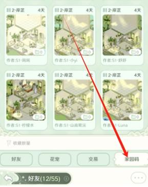 6、我们首页点击好友,然后在好友界面最后可以看到家园码,我们保存的家园码都在这里