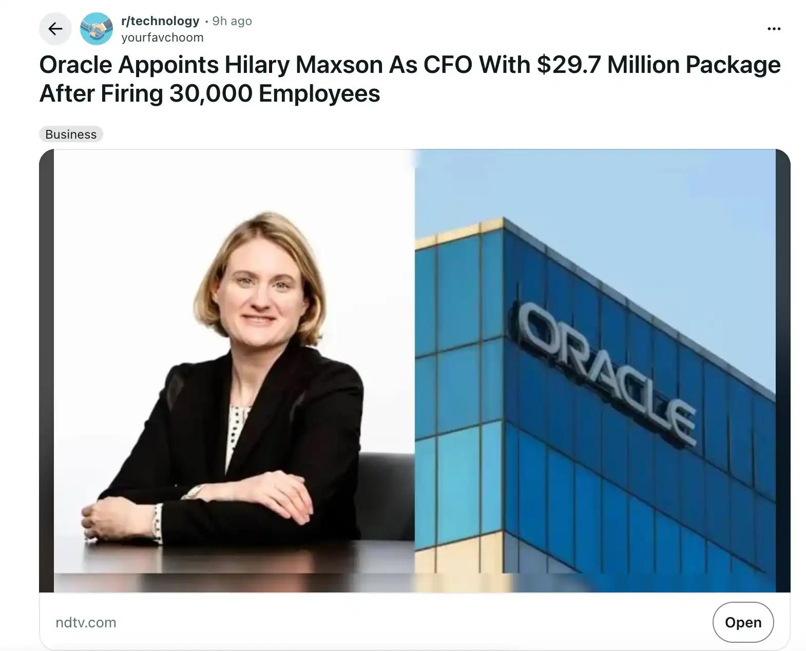 这家公司裁掉了大约 3 万名员工。而几天后,它任命了一位新的 CFO,给到的总薪酬包是 2970 万美元。