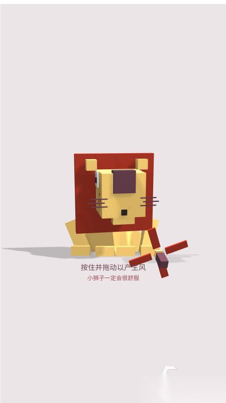 其实游戏所采用的是非常休闲的形式,然后大家可以用手去操控屏幕上面的吹风机,这样就可以去调节风力的方向和强度,在游戏中还会有一头狮子,这个狮子可以随着气流自由的摆动。根据大家所控制的力度,四肢摆动的幅度和协调程度也是不一样的,其实游戏比较的简单,大家可以在休闲的时候去玩。
