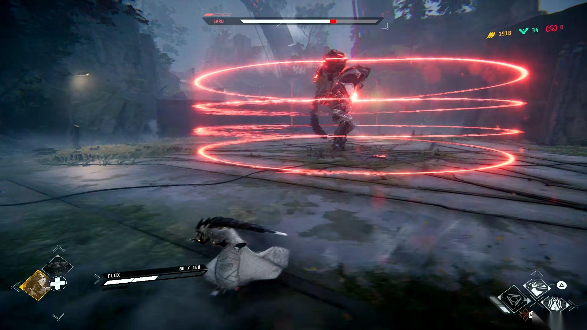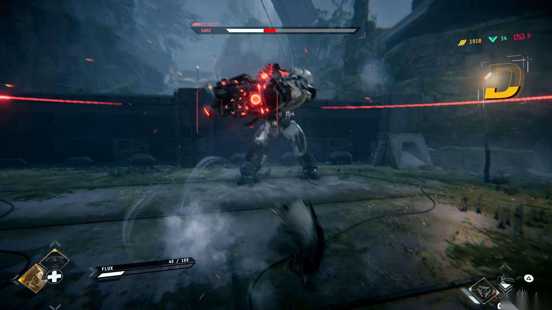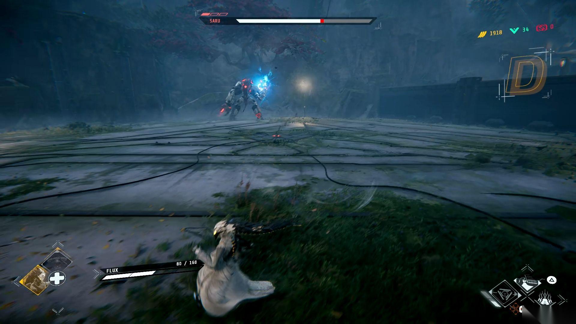 萨鲁会施展第一阶段的两连击组合技,并混合使用砸地和冲击波。你需要注意的一点是,当它蓄力时,会射出三道激光束,你必须按下闪避来躲避它们。