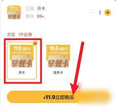 接着,按照提示进行购买操作。一般只需选择支付方式,如微信支付、支付宝支付等,然后确认订单信息。支付成功后,早餐月卡就会立即生效。