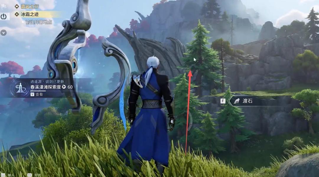 切滑板/攀爬,绕过小山,走到石柱顶部找到蓝隼(精英怪)
