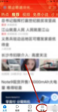 2、在浏览器主页,点击最下边的【菜单】选项。