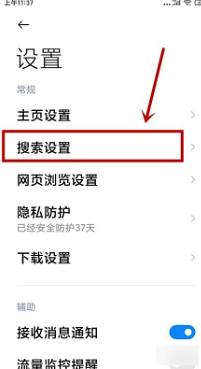 4、进入浏览器【设置】页面后,点击【搜索设置】选项。