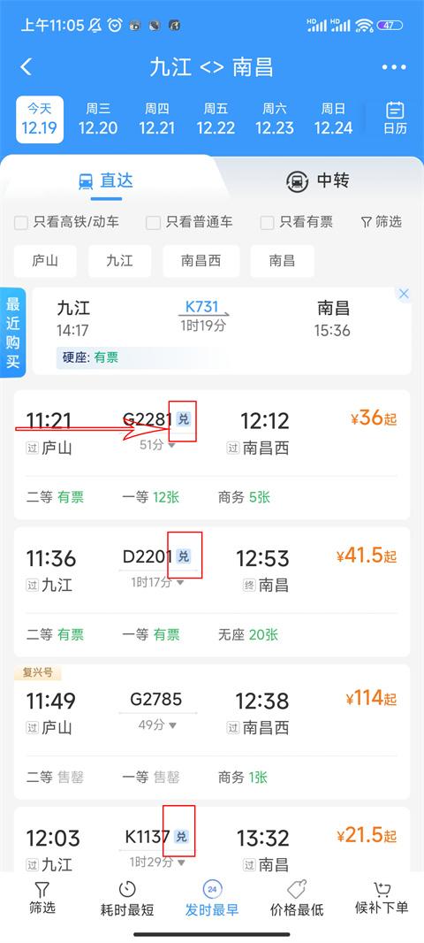 如已注册的朋友有足够的积分,可以直接搜索自己的车票,前提是你购买的车票下方有一个“兑”;