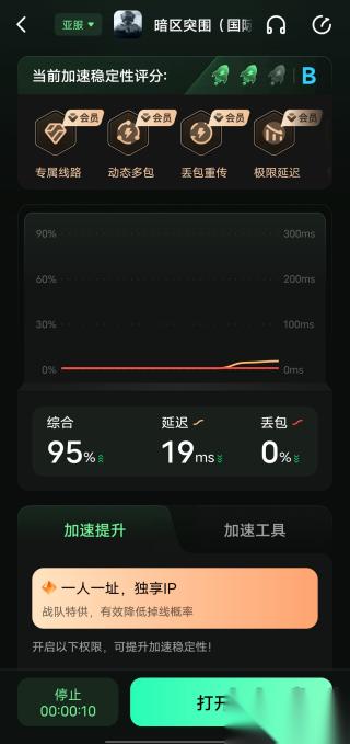 2、在加速器界面选择暗区突围国际服加速的区服,进行加速,之后会自动为你启动游戏。