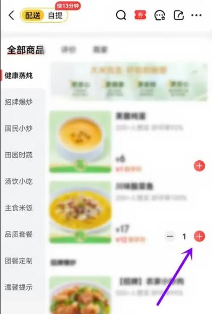 选定心仪的菜品后进行下单即可