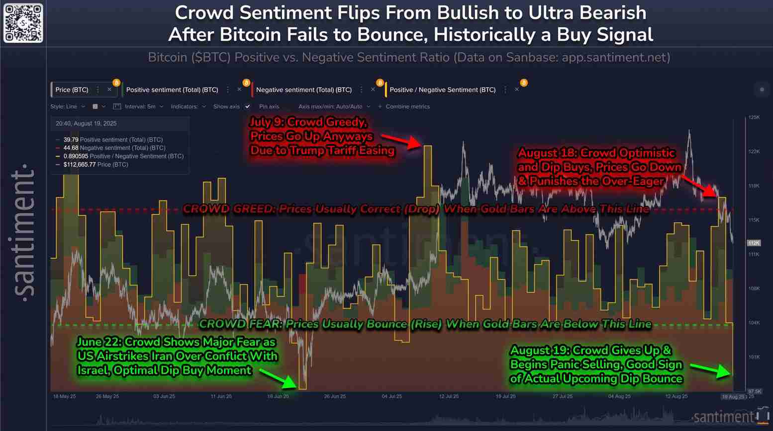 值得注意的是,比特币两个月前对类似事件的反应进一步强化了这种说法。作为背景,BTC 在 6 月 22 日跌至 98,330 美元的低点,当时散户变得极度看跌。然而,在此轮下跌之前,BTC 从低点反弹了 26%,达到了目前的历史高点。