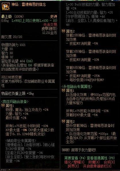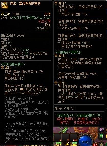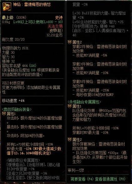 3.雷德梅恩套只推荐穿戴2件,根据自己职业需要选择最合适的2个技能,其余三件推荐穿戴泰玛特。