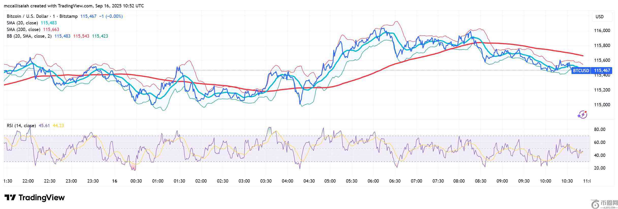 BTC 未能突破 116,000 美元的阻力位,目前维持在 115,400 美元附近。