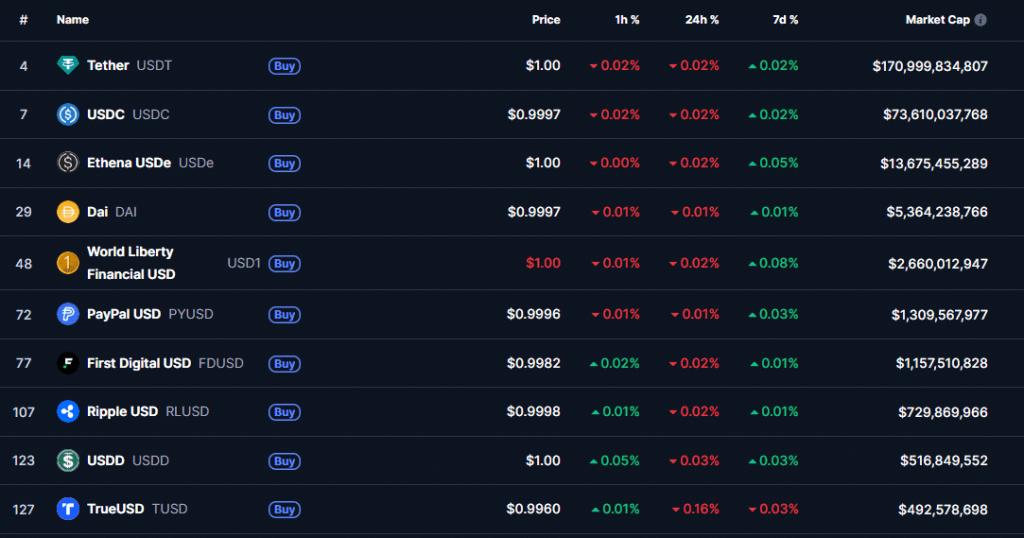 按市值计算的顶级稳定币(:CoinMarketCap)