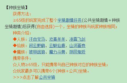 1)种族坐骑只能是特定种族的才可获得及携带(只能携带与自己种族对应的种族坐骑),而公共坐骑无此限制。种族坐骑的携带要求为≥65级,种族坐骑的成长上限高于公共坐骑。