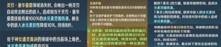 1.减抗:重云减10%冰抗,钟离全减免20%,申鹤减15%冰抗,共计45%减抗,吃满的情况下超过了风套效果,在手法失误的情况下能保证35%的减抗(重云的减抗需要卡时间吃满)。