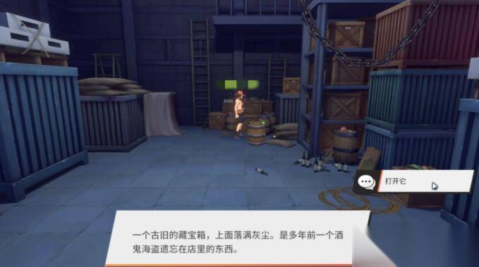 从酒馆出来,旁边就是仓库,里面有个闪光的箱子,打开能得到冒险笔记和藏宝图碎片。