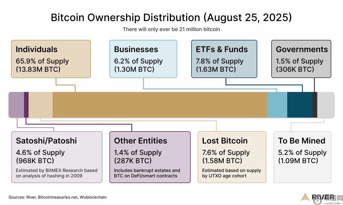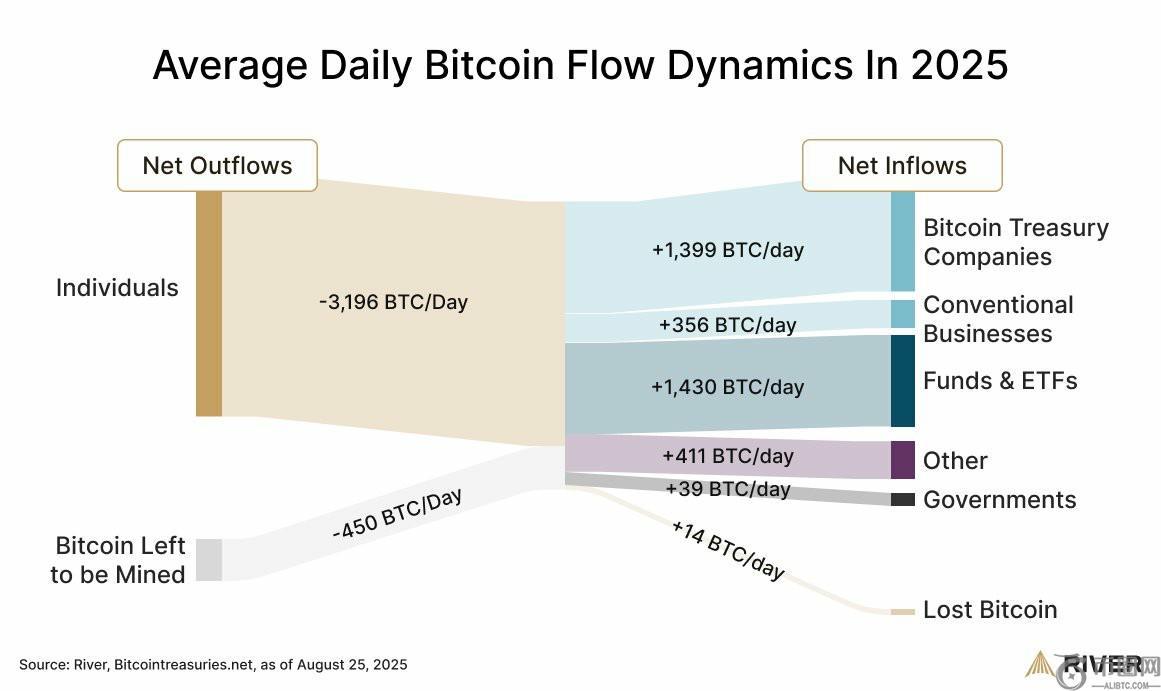 企业、政府和ETF在2025年平均每天共同购买数千枚比特币。:River