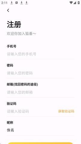 在猫番阅读首页点击右下角“我的”,再点击右上方的“登录、注册”,进入登录界面后点击“注册”,按要求填写用户名、密码及常用邮箱等信息,最后点击注册即可完成账号创建,后续登录时输入账号密码或通过第三方授权即可快速登录。