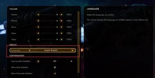 天外世界太空人之选怎么设置中文