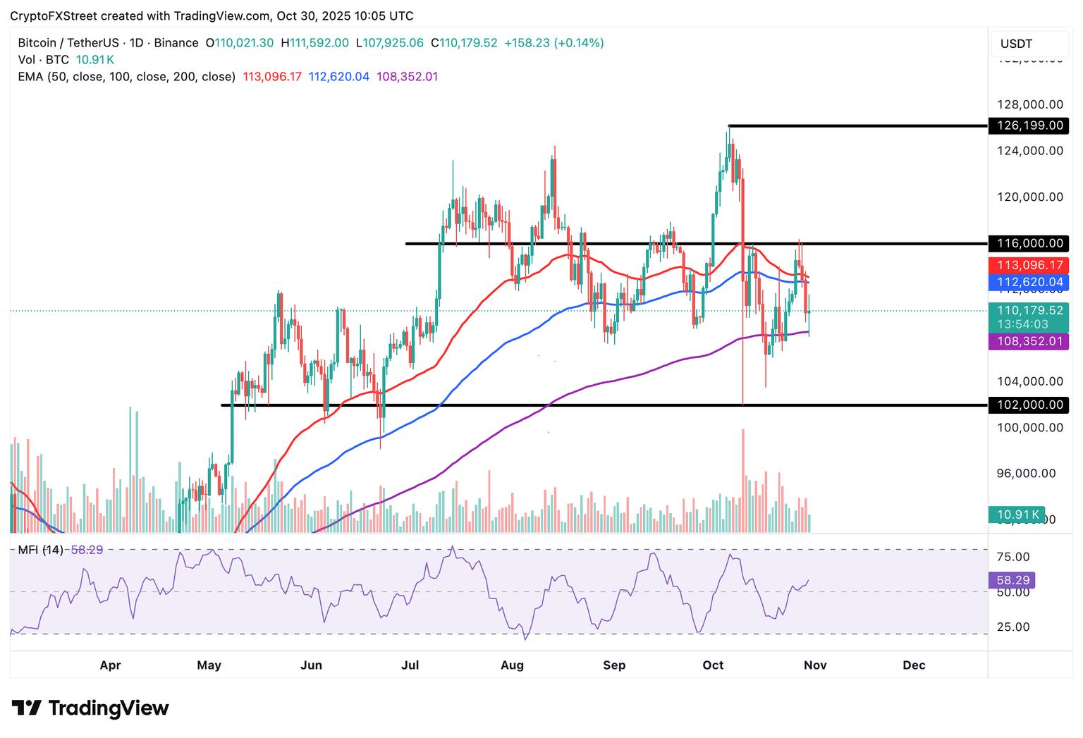交易员将密切关注比特币日线收盘价能否突破 11 万美元整数关口,以判断其周末前的复苏潜力。关键里程碑包括能否持续反弹至 100 日均线 112,620 美元和 50 日均线 113,096 美元上方。