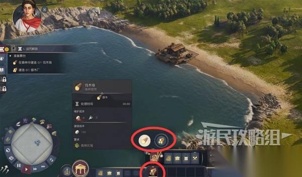 木材对城市的持续发展至关重要,点击屏幕下方的快捷按钮打开木材生产链,在森林中建造伐木场。