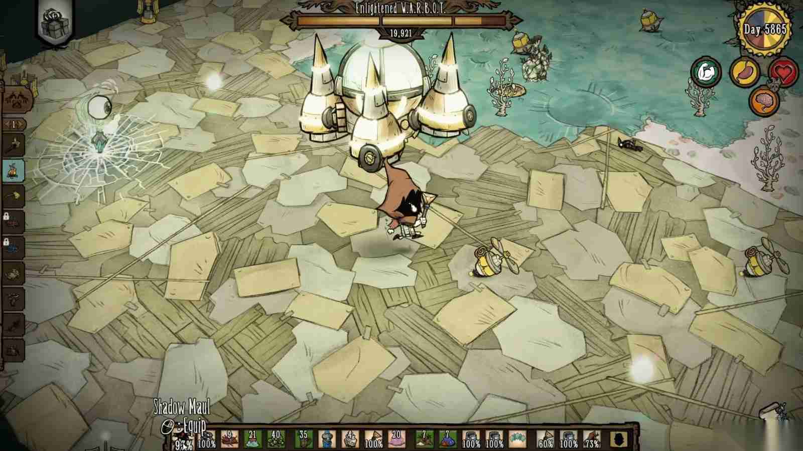 天体后裔是联机版中的一个强大Boss,打法需要选择合适的角色例如微洛或老奶奶,装备启迪之冠来提升效率,这样可以减少物资消耗并增强生存能力。准备阶段包括收集必要的武器如暗影剑或火腿棍,以及食物如肉干或饺子,以维持饱食度和生命值。避免使用瞬移技能或增伤料理,以免干扰战斗节奏。第一步是找到地图上的饮水机,它外观类似抽水马桶,通常分布在天体区域的三到四个位置。找到之后靠近饮水机获取蒸馏的知识物品,这个过程需要小心避开附近的敌对生物如虚影或小怪,以免提前消耗资源。