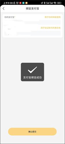 在绑定页面内输入用户的支付宝账号以及姓名后,跳转支付宝页面确认绑定即可。
